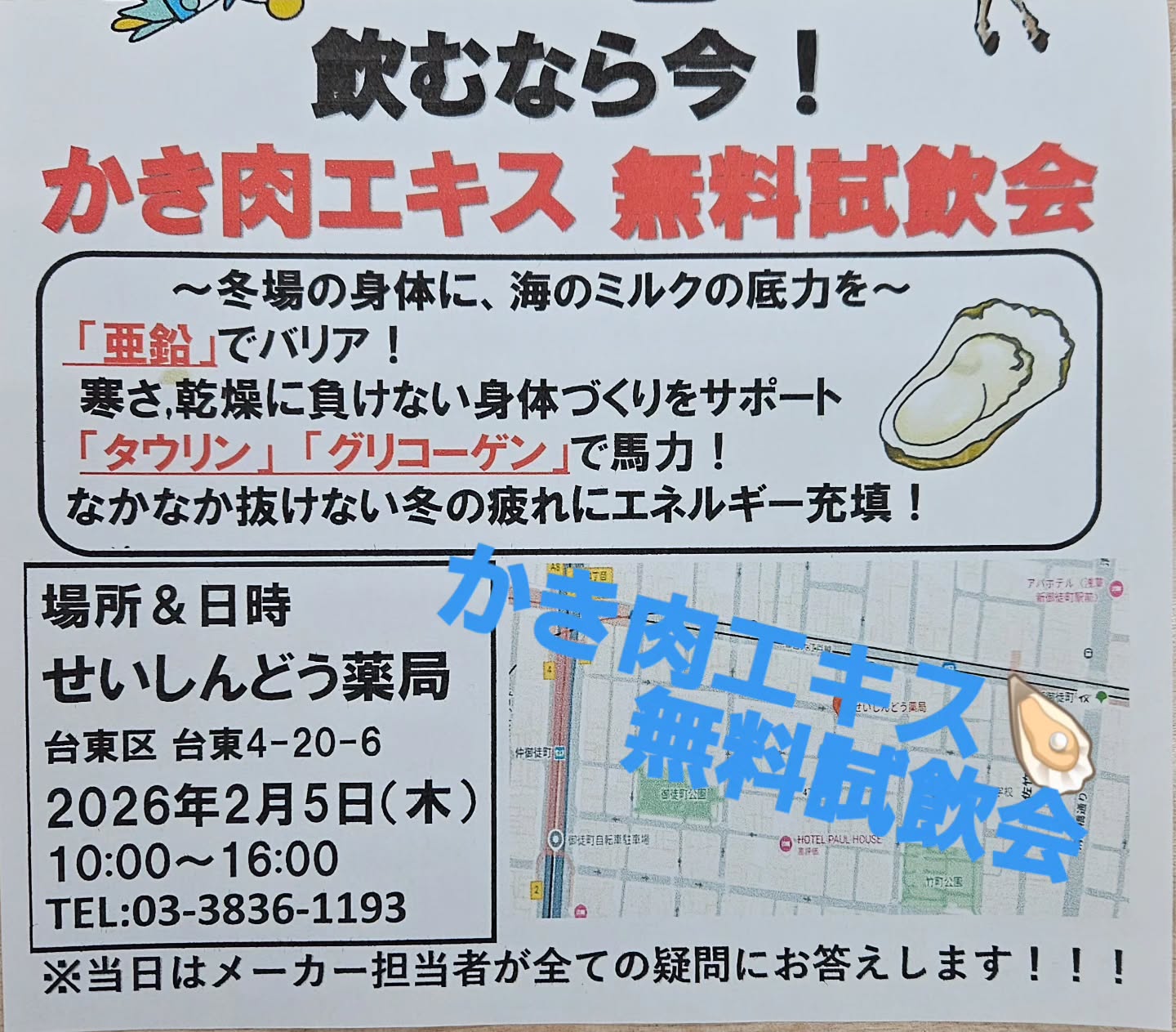 #御徒町せいしんどう薬局本店 #かき肉エキス #無料試飲会